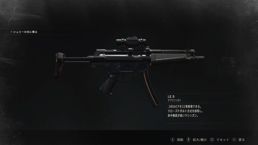 ゲーム内では「LE 5」という名前のサブマシンガンで段数は無限。