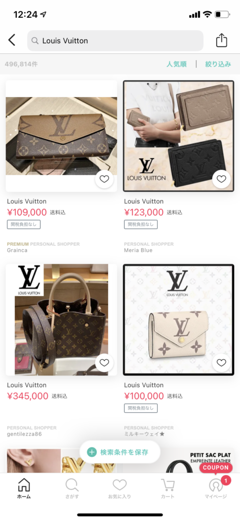 実際にBUYMAのサイトで人気順で上位に出ている商品を見てみましょう。