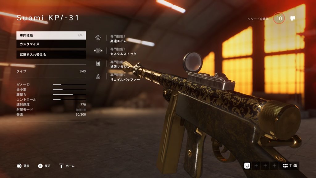 専門技能ではマガジンの装弾数を増やすものと、