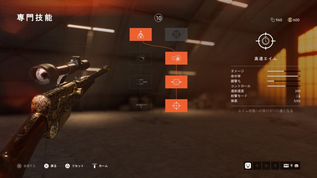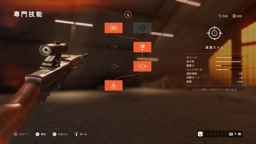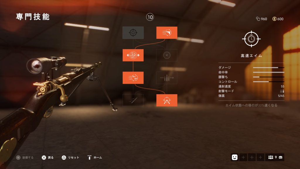 また、専門技能で低抵抗弾をつけることによって銃弾の落差も少なくなり、