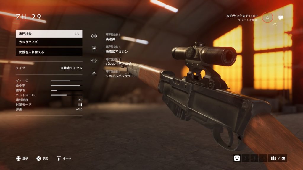 また他のライフルとは異なり、脱着式マガジンを専門技能により選択することができ、早く安定したスピードでのリロードが可能となります。