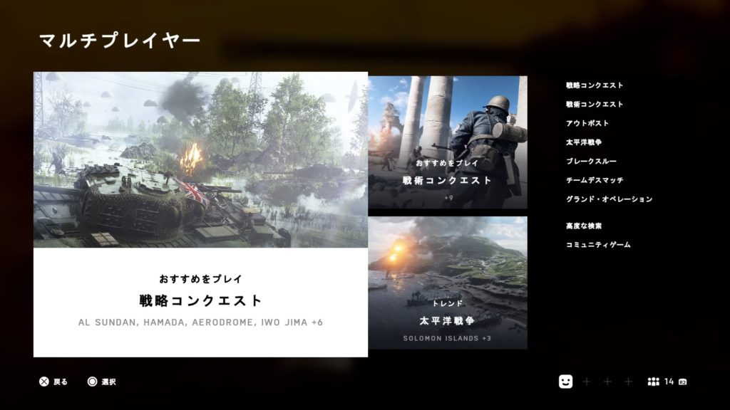 人気を集めているバトルロワイヤルがBF5でも登場しましたが、こちらはPS4版では残念ながらマッチングしません。